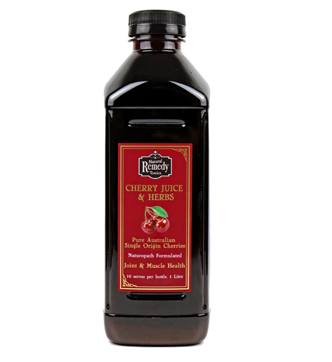 Taste the goodness of our 100% pure Australian single origin cherry juice blended with a Naturopathic formulated herbal complex, beneficial for joint health & exercise recovery. 1000ml bottle.