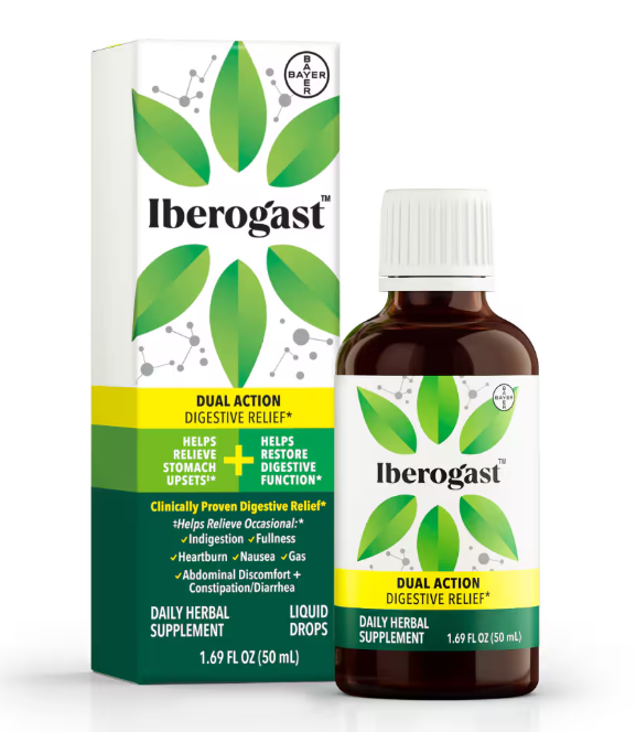 Iberogast is not another probiotic or digestive enzyme: Probiotics have good bacteria and digestive enzymes to help break down food, whereas Iberogast has a proprietary 6-herb blend to help relieve occasional stomach upsets by helping restore digestive function to help your gut work like normal.*